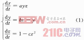 利用连续和离散混沌系统进行伪随机序列发生器的设计已有研究。离散混沌由于算法简单致使其运算速率快,序列码率较高,但缺点是系统参数和初值条件在一般情况下较少,密钥空间小,序列的安全性较低。连续混沌一股情况下是几个非线性微分方程的耦合,其系统参数和初始条件较多,产生伪随机序列的密钥空间较大,缺点是运算复杂,在数字系统实现时运算速率相对较慢。但如果采取合理的量化方法,会较好地弥补这种慢的运算速率。如在抽位量化方法中,如果一次抽取混沌数字迭代值的多位作为0,1序列,可大大提高其码率。因此采用复杂的连续混沌系统作为伪随机序列的源将是混沌序列应用的一个方向。